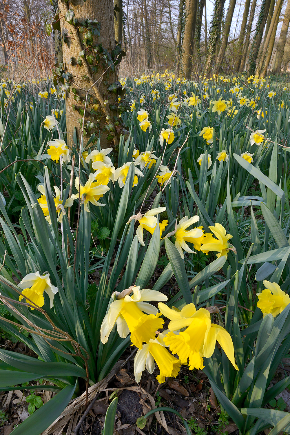 Vroeg in de lente laat het landgoed haar kleurrijke kant zien. Een hele verzameling aan stinsenplanten komt er uitbundig tot bloei. Ze zijn in een ver verleden aangeplant, maar zorgen elk jaar weer voor een klein spektakel. De meeste planten zijn te zien in de voormalige rozentuin. Bij de vijver, onder een enorme beuk, staat de grond vol met bloeiende bloemen. Het seizoen begint met de gele bloemen van winterakoniet en de witte bloemen van sneeuwklokje, inclusief een soort met dubbele kroon. Al snel volgen boerenkrokus en vingerhelmbloem. In april zie je hier ook grote aantallen witte en blauwe anemonen. Even verderop staat stengelloze sleutelbloem langs de slootkanten en kun je in mei genieten van een zee aan voorjaarszonnebloem in de beukenlaan aan de oostzijde.